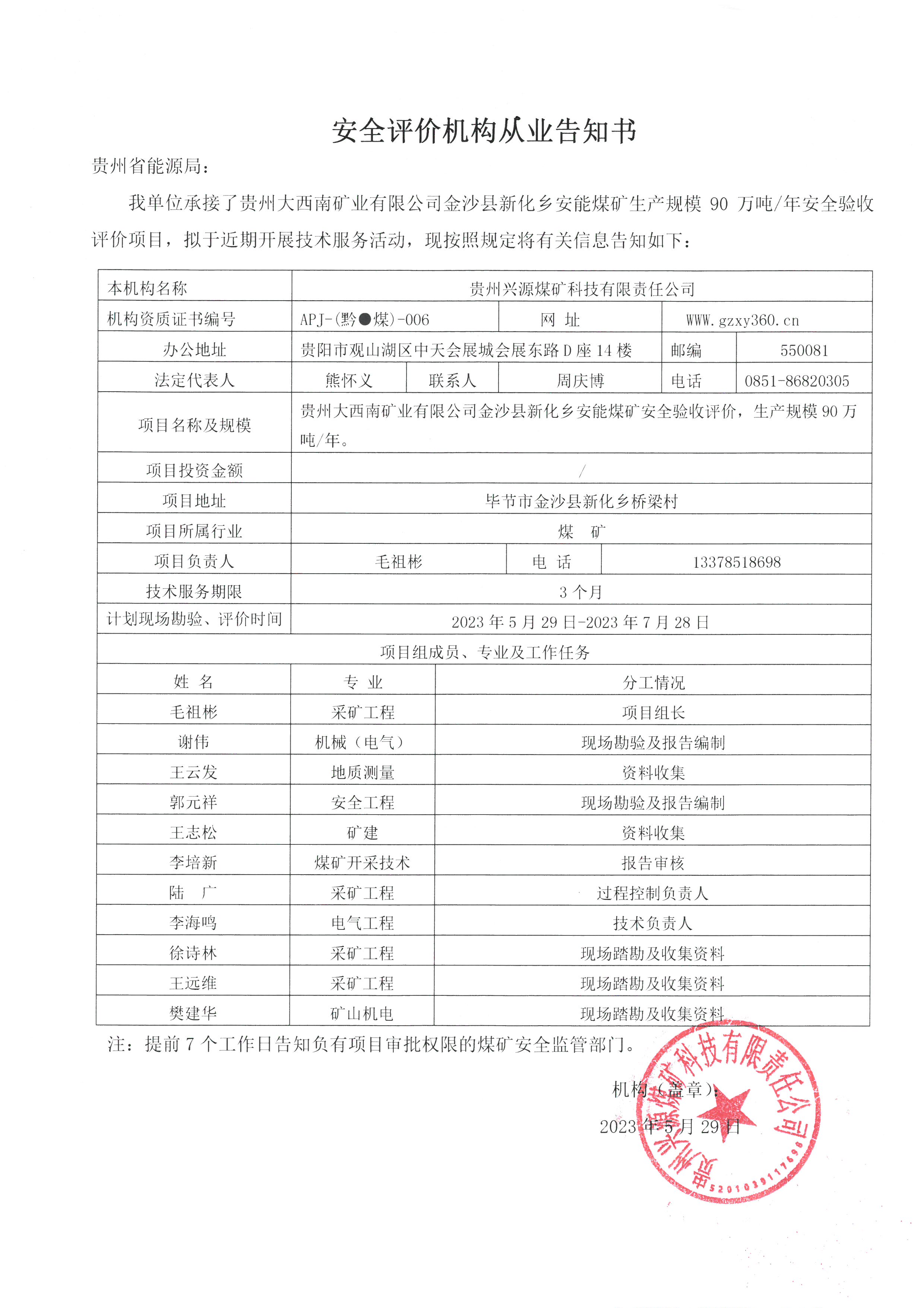 Notice of publicity