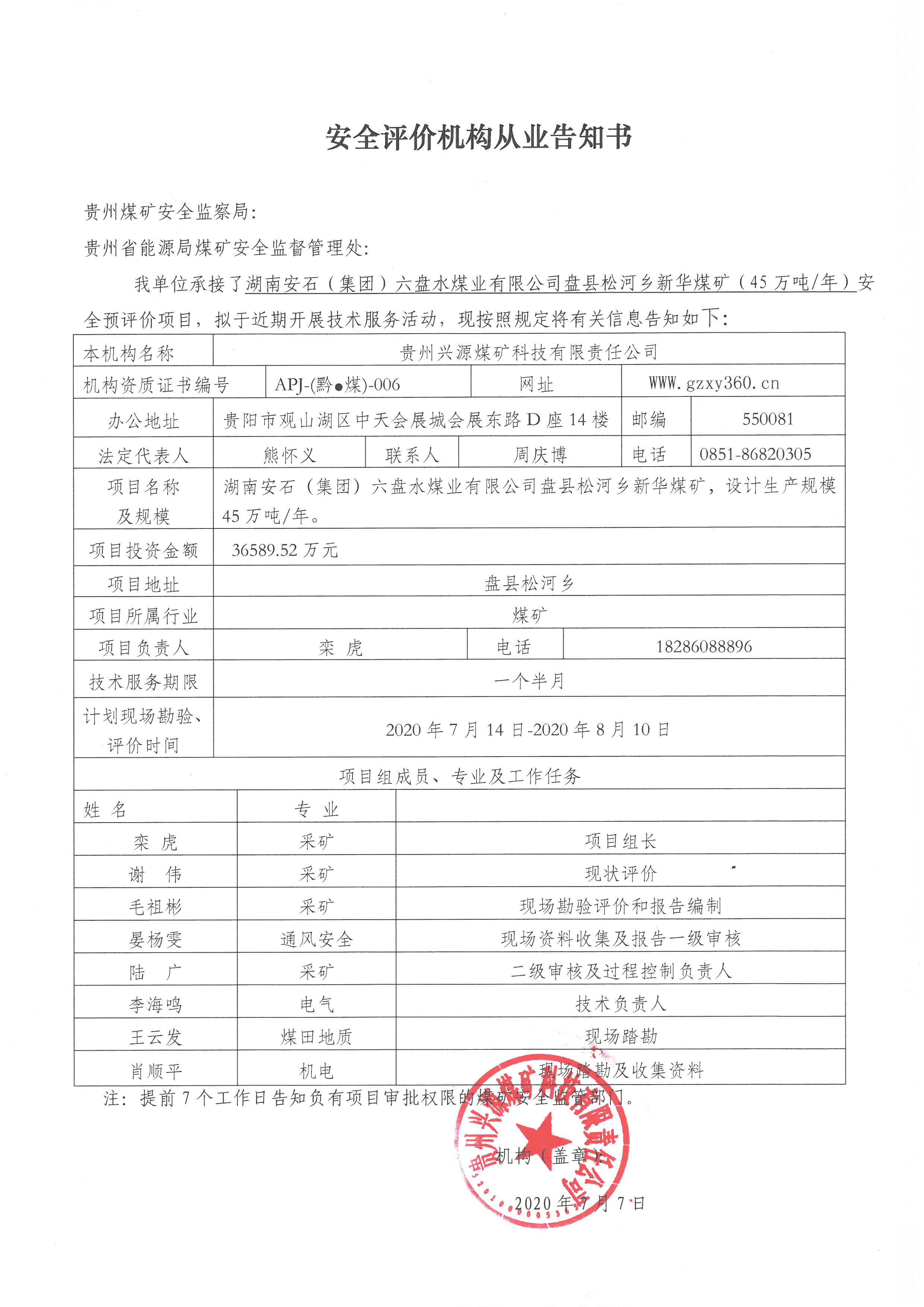 Notice of publicity